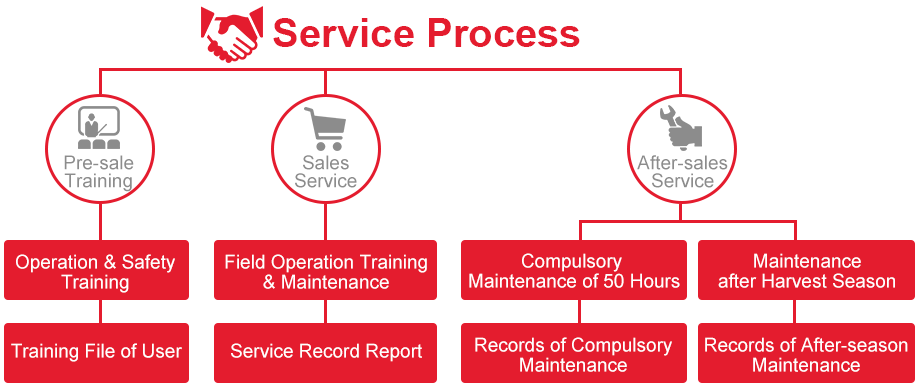 In addition, we provide after-sale service to end users by cooperating with dealers. The service department of our company regularly organizes training for service staff who is qualified to perform service only after the training exam is passed, make sure that all the after-sale issues are solved in time with excellent service. We have a strict assessment for the service of dealer to ensure the after-sale service is carried out without delay, and meanwhile, we pay return visit to end users for gathering feedbacks to perform supervision & management of after-sales service within nationwide and coordinate the local dealers to carry out service of cross-regional operation. Furthermore, we set up service hotline to provide consultation, solution, feedback, coordination of cross-regional operation, quality complaint and dispute resolution for the end users by sending service staff who are qualified maintenance men with rich experiences to ensure quality service & improve customer satisfaction.